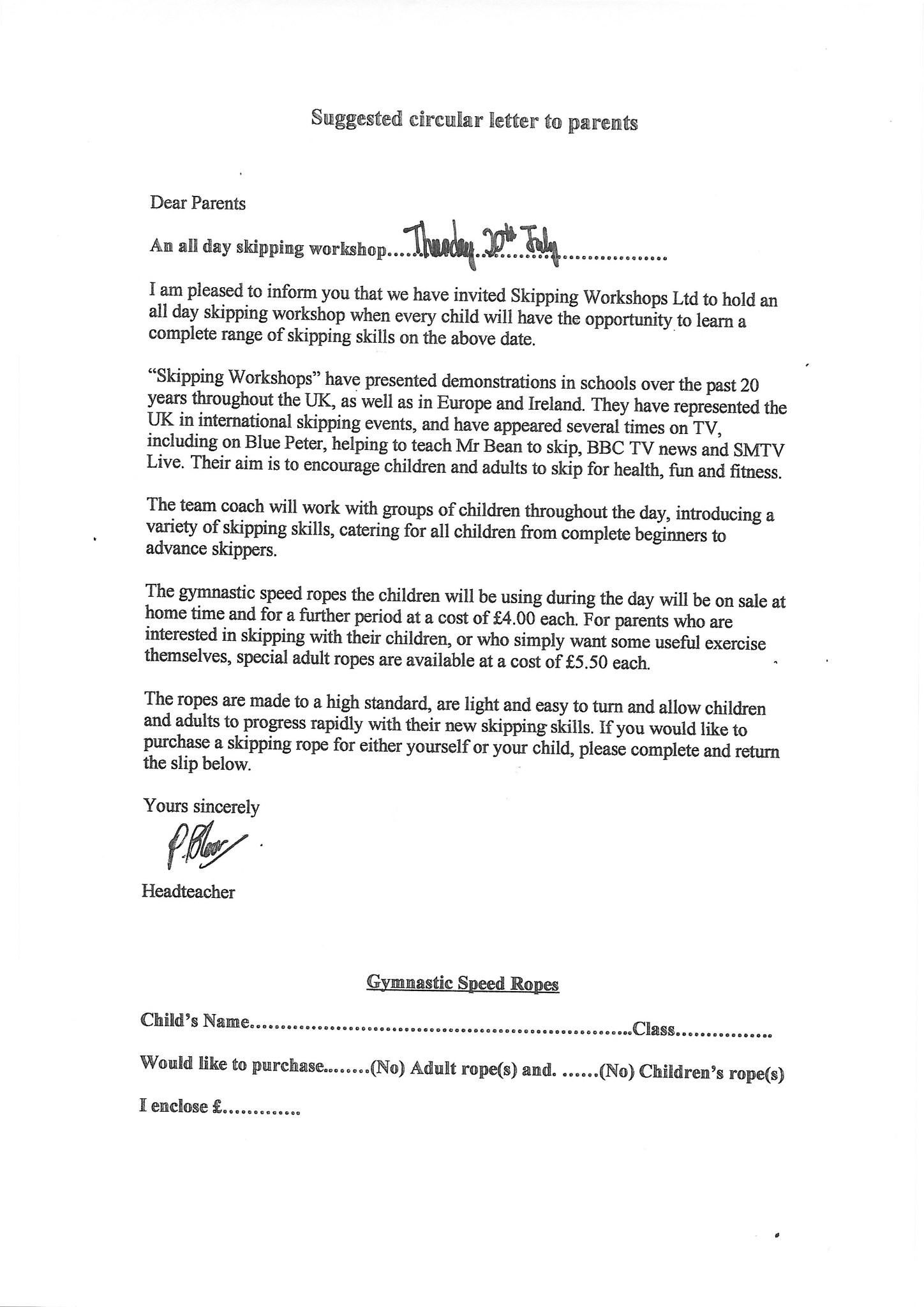 Headteachers letter